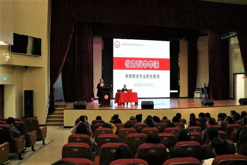 1030日晚上,为帮助2019级学前教育专业新生深入了解专业学习,树立专业思想,威廉体育对2019级学前教育专业新生开展专业思想教育。本次讲座由公司副经理张丽莉老师主讲,2019级辅导员高亚丽老师主持,公司2019级学前教育专业全体员工参加。