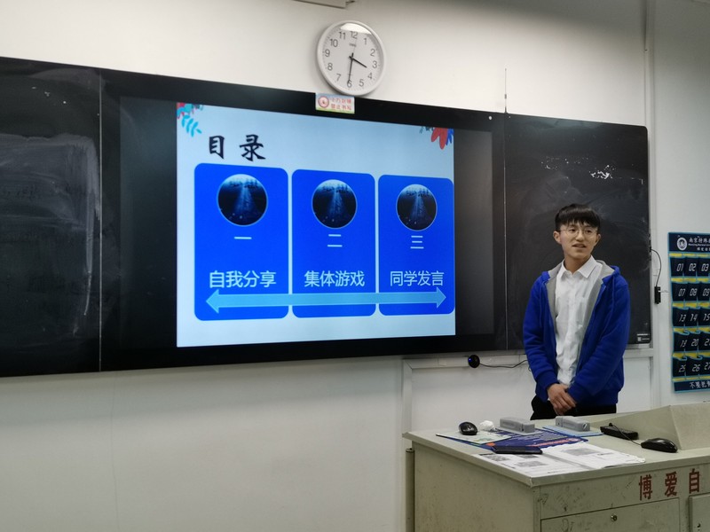 为提高同学们的积极性,加强班级内部的团队意识,教科1909班于1219号下午三点二十在博雅楼3312开展了本学期第六次班会。本次班会以“加强自我认识,增进班级凝聚力”为主题,由心理委员王震海主持,辅导员符昱叶老师也参加了本次班会。