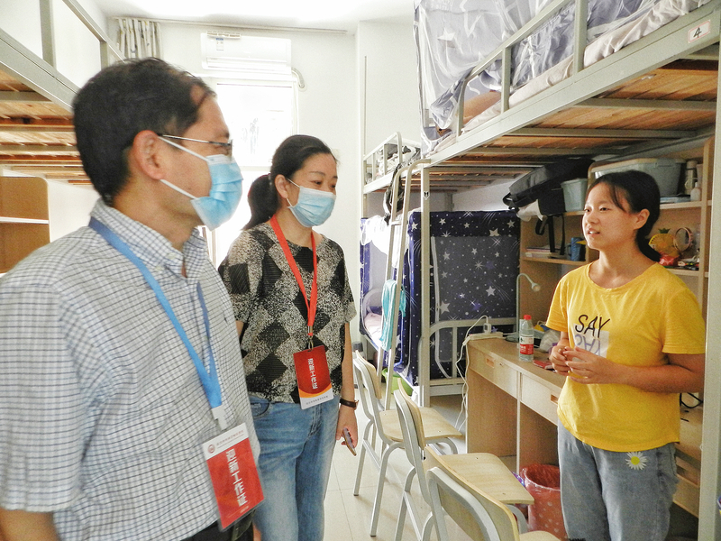 在新生宿舍中,公司领导们详细询问了新生们的生源地、对专业的认知等相关情况和来校生活的适应情况,勉励同学们要志存高远、脚踏实地,继续保持良好的读书和生活习惯,争取学有所成。此外,还走访、慰问了一名特殊的新生——来自青岛盲校的黄侃同学,并询问其身体状况、饮食起居、学习等方面的具体情况。吴书记详细介绍公司优秀盲人老员工事迹,激励黄侃同学要有勇于面对困难,通过老员工活,让自己更加自信,更加强大。目前,公司正在研究制定专门帮扶政策,以帮助黄侃同学尽快适应新的环境,融入新集体。