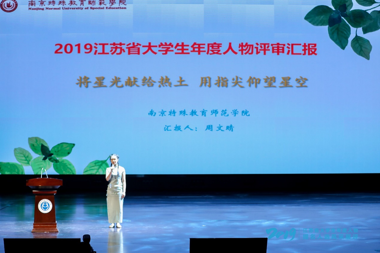 在展示现场,周文晴通过典型事迹介绍和演讲的形式,充分展示了个人风采,表现出残障老员工自强不息的顽强意志,更彰显了特师学子心怀家国的博爱精神。周文晴的现场展示深深打动了在场的评委老师和全场观众,获得了江苏省高校本科组第三名的好成绩。校员工工作处处长章小军、教科公司党总支书记吴月华、副书记吴兴也到场观摩,为周文晴加油鼓劲。