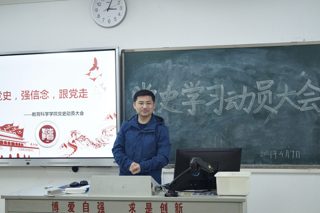 “为什么要学习党史?”吴兴副书记的动员讲话从提问问题开始。现场师生互动气氛热烈,在吴兴副书记循循善诱下,同学们逐渐明晰学史明理、学史增信、学史崇德、学史力行的重要作用。“本次党史学习的重要意义是什么?”现场的追问让同学们深刻认识到,要立足中国共产党百年华诞的重大时刻和“两个一百年”历史交汇的关键节点,领悟本次党史专题学习的必要性和重要性。“怎样才能学好党史?”吴兴副书记继续追问,同学们纷纷提出建议:在班级深入开展系列班团活动,带领同学们真学、真懂、真信,并将理论和实践结合起来,将党史学习与服务同学结合起来,为同学办一件实事,解决一件难题。