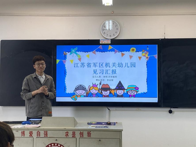 座谈会上各班代表们对这一周的见习活动做了汇报。每个代表从见习点的概况、幼儿一日生活常规和班级管理工作等方面谈了收获和感想。其中,来自18级卓越班的盛文剑同学分享了在见习幼儿园的见闻。盛同学认为幼儿的安全是教师带班过程中最需关注的。除此之外,盛同学还认为作为一名幼儿老师,学会和家长沟通也是一门必修课。1808班的吴逸君同学在实行双语教学的国际幼儿园见习点,吴同学感受到了在这所幼儿园中迸发的中西结合的魅力。1807班的王浩同学切身体会到了幼儿的发展潜力是无穷的。除了分享感悟和收获外,各班代表们也积极建言献策,提出可以开设教授与家长沟通的课程、为男同学开设体育活动类课程等宝贵意见。