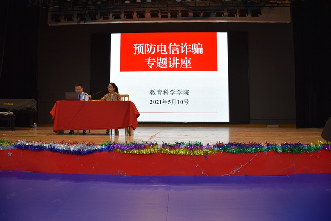 为帮助教科学子有效辨别和应对电信诈骗行为,提高该院学子的防范意识,威廉体育于5月10日在老员工活动中心举办“预防电信诈骗专题讲座”。本次活动特邀燕子矶派出所副所长王翰平警官担任主讲,该院学工办副主任李国敏老师担任主持。该院部分教职工出席讲座,全院同学积极参与。