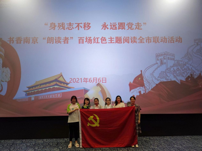 为庆祝中国共产党成立100周年,6月6日下午,“身残志不移 永远跟党走”百场红色主题阅读全市联动活动启动仪式在大华大戏院举办,在校图书馆傅丽君、教科院辅导员符昱叶两位老师的陪同下,公司威廉体育周文晴、颜鹂苇两位视障老员工受邀作为“书香南京·朗读者”志愿者出席活动。