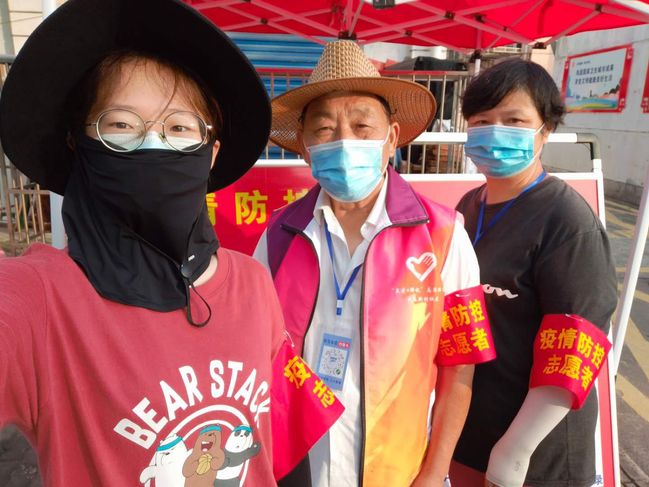 志愿服务南通全员核酸检测,义不容辞。由于核酸检测人员比较紧张,桂君欣同志在完成上午6小时的社区防疫志愿服务后,继续投入到下午的核酸检测志愿服务中去。布置核酸检测点、登记核酸检测人员信息、协助维护现场秩序,从下午3点持续工作到晚上10点,当天参与志愿服务时间长达13个小时,虽然身心疲惫但倍感充实。后来接到社区通知,本小区有从南京禄口机场回本地人员,在完成21天隔离后仍需7天居家健康监测。在这7天里,因无法与家人接触,隔离人员的生活物资在由家人送至卡口后,均由她二次递送至隔离居民家中。小区较老未安装电梯且楼层较高,每日上下六楼多次,工作量巨大属实不易。