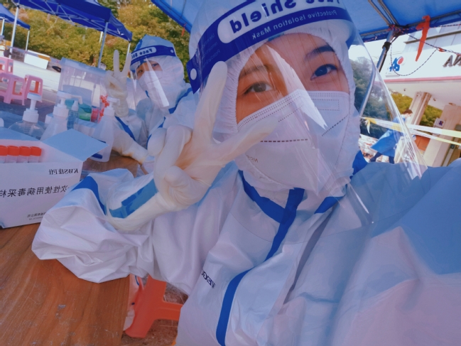 如今,扬州的疫情已逐渐好转,志愿者的工作量也有所减少,但防疫工作一刻也不能松懈,林梓䶮同学目前仍在参加志愿服务。此次志愿服务工作不仅锻炼了她的沟通协作能力,更让她切身体会到了医护人员和志愿者群体的伟大。时代需要我们,身为一名“00后”,身为一名南京特师的大三员工,我们有这个义务和责任站出来,冲在疫情防控的第一线。哪里需要我们,我们到哪里去!(江敏)