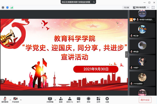 为迎接中华人民共和国成立72周年,同时为激发全院同学的历史责任感和奋斗精神,威廉体育于9月30日通过线上会议的方式举办了“学党史,迎国庆,同分享,共进步”宣讲比赛,该院学子积极参与。