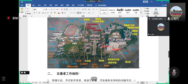 会上,王小文同学首先详细介绍了新生整体情况、入学报道流程安排、志愿者迎新具体业务等志愿服务细则内容。接着,2021级新生辅导员汪亮巧老师首先对志愿者们的奉献精神表示肯定,并就志愿者的服务提出“热情、周到、得体”的要求,她希望全体志愿者守时、礼貌,事先做好充分准备,以饱满的工作热情,为新生提供细致、温暖的志愿服务。最后问答环节,志愿者更加详细了解了新生宿舍、搬运行李等具体问题。