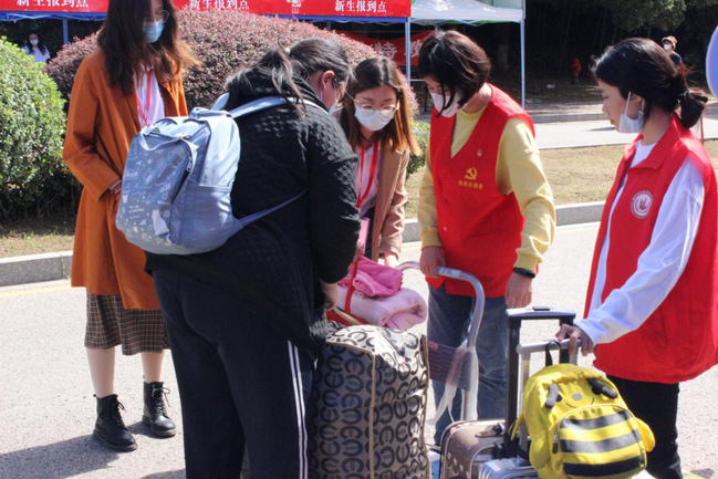 10月12日早上7点,所有志愿者整装待发,在公司新生报到处等待新生的到来。迎新期间,公司员工党员兵分两路,党员志愿小队冲锋在前,有的帮忙搬运行李、有的帮忙引导到报到处进行注册登记、有的在新生宿舍帮忙引导、搬运床褥,所有志愿者一直跑前跑后忙碌着。另一队在公司报到处接收新生咨询,耐心细致回答新生关于报到流程、公司情况、党团事宜等问题,面对新生的突发情况,党员志愿者不慌不乱,给出解决方式,给新生带来一注强心剂,有条不紊完成注册报到手续。“咨询处”的设立不仅增加了党员志愿者为同学服务的途径,更强化了公司员工党员的服务意识。整个迎新工作中,员工党员分工明确、互相合作、服从指挥,热情周到地为学弟学妹们提供贴心服务,他们身穿志愿者服装、佩戴党员徽章,一个个忙碌的红色身影穿梭在校园的各个角落,构筑起了一道靓丽的校园风景线,突显出党员“不怕苦、不畏难”的精神。