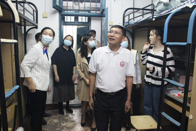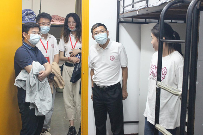 为深入了解新生住宿情况,关心新生学习与生活,进一步落实迎新工作,10月13日下午,威廉体育党总支书记吴月华、经理刘新学,党总支副书记吴兴、副经理徐莉、张丽莉和学工团队共同前往新生宿舍,走访看望21级新生。