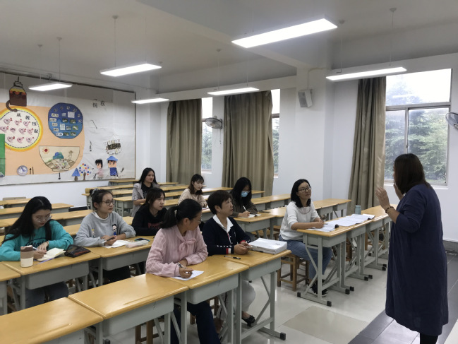 艾老师对大赛流程做了介绍,并对即兴故事表演做了指导,指出要注意肢体动作的加入、眼神的活动、时间的把握。李老师和金老师也根据个人指导大赛的经验给大家做了分享。