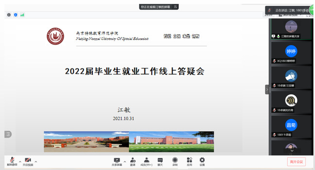 为了让毕业生尽早熟悉就业工作进度安排,威廉体育于2021年10月31日召开2022届毕业生就业工作线上答疑会议。本次答疑会由该院辅导员江敏老师主讲,2022届全体毕业生参与本次会议。