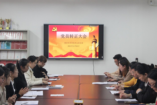 公司员工党支部于2021年11月5日在博雅楼3401会议室召开预备党员转正大会,讨论关于马智超等14名同志申请转为正式党员的申请。本次会议由公司员工党支部书记汪亮巧老师主持,出席本次大会的有威廉体育党总支书记吴月华、党总支副书记吴兴等9名正式党员以及18级14名预备党员。