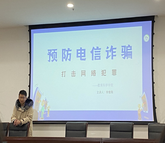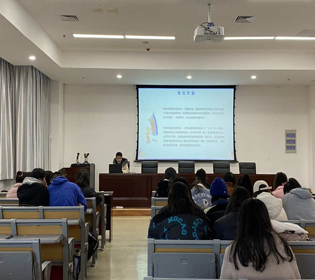 李维翔老师以防范诈骗的视频作为切入点,通过PPT演讲的形式从什么是电信诈骗、电信诈骗的几种常见形式、如何识别防范电信诈骗进行深入详细的讲解,让同学们充分了解什么是网络诈骗,理解提高自我防范意识的重要性。李维翔老师向同学们重点强调了淘宝刷单诈骗,虚假网站、链接类诈骗,微信诈骗,亲属信息诈骗等几种常见骗术。切实增强了同学们在生活中遇到诈骗时灵活应对的防范意识,提高了他们各方面自我预防、自我保护、自我应对能力。班会最后,李维翔老师告诫同学们切勿轻易相信他人,千万不要轻信来历不明的电话、短信,不要轻易透露自己的身份和银行卡的信息,凡是关系到钱的都要万分警惕。