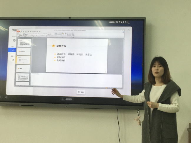 推进会上副经理(挂职)秦奕与青年教师交流了“科研反哺教学”的思想,介绍了江苏省教育厅和公司科研处对高校哲学社会课题的立项情况、时间节点及结项要求的具体规定。随后,课题负责人就项目进展情况进行了陈述与分享。老师们围绕本科生融合教育素养和心理健康问题、学前融合教育教师的专业需求、发育迟缓幼儿早期融合教育支持体系和融合教育课程教学实践等主题展示了课题方案推进情况,就研究问题与方法展开了互动式研讨。