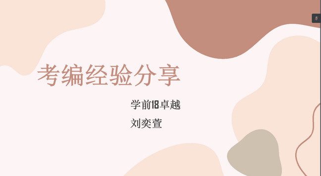 会上,陈思茹等6位同学就考编、面试等做了就业经验分享。就职于栖霞区第一实验幼儿园尧辰园的陈思茹就笔试、面试以及考编上岸后的规划进行了详细的阐述。签约张家港市悦丰幼儿园的杨咏琪同学主要分享了关于校园招聘、社会招聘的经验。就业于北大医疗脑健康儿童发展中心的李欣欣同学,详细地讲述了面试简历制作、工作调研以及工作后面临的挑战等方面的内容。签约无锡市滨湖实验幼儿园的常乐同学总结了自己在考编过程中的学习方法以及笔试、面试中的注意事项。就业于无锡市新吴区梅荆花园幼儿园的刘奕萱同学重点介绍了笔试和面试的方法和技巧以及自己在考编过程中的心得体会。就业于苏州高新区幼儿园的程钱依同学就笔试的前期准备以及面试流程做出了详细介绍。在活动过程穿插的提问交流环节中,几位同学耐心的解答了同学们提出的问题。会议的最后江敏老师做总结发言。她表示通过今晚的经验分享,明显看出21届毕业的同学在职场中得到很多的历练,愈加优秀,希望22届的同学多向优秀的学长学姐学习,把握当下,不断探索更多可能性,早日成为一名合格的职场人。