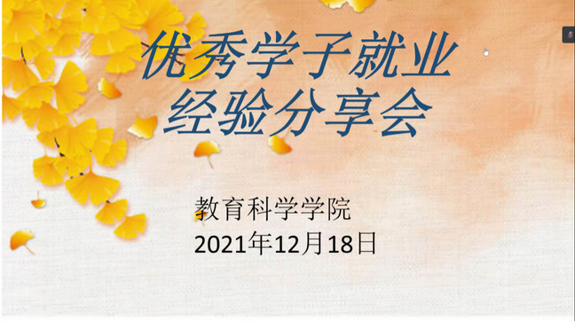 为让同学们进一步了解就业以及面试的相关信息,消除同学们对于就业的种种困惑。威廉体育于2021年12月18日举办线上就业经验分享会,特邀优秀的21届毕业生和已经考编上岸的22届同学进行分享,威廉体育辅导员江敏和18级全体员工参加。