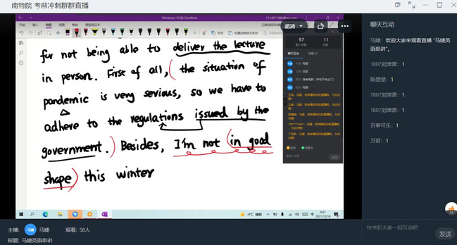 为了进一步加强学风建设,提升考研学子英语素养和政治理论基础,助力大四员工考研升学,威廉体育于12月18日、12月19日举行线上考研讲座。本次讲座由马婕老师、孙洲老师主讲,公司员工积极参加。