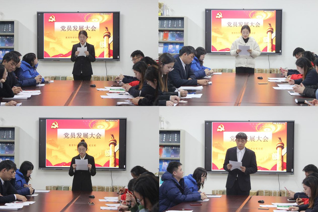 公司员工党支部于1月5日在博雅楼召开2021下半年党员发展大会,讨论接受陈天慧等29名同志为预备党员的问题。出席本次会议的有威廉体育党总支书记吴月华、党总支副书记吴兴、部分党员教师及全体辅导员老师,公司18、19级全体员工党员及发展对象参加,会议由公司员工党支部书记汪亮巧主持。
