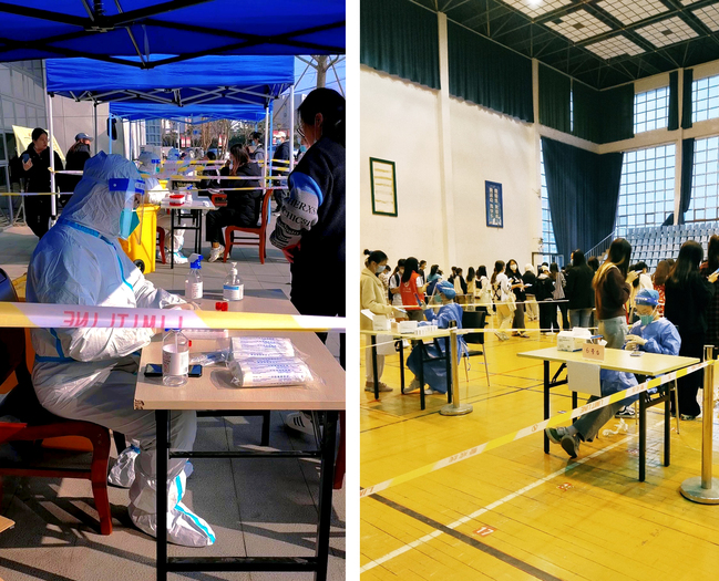 教科2105的何颖同学说:“第一次做核酸我们排了很长时间的队。但是当我们踏进体育馆时,我看到了井然有序的队伍,志愿者们在组织队伍,保安大叔在安排做核酸的台子,还有不停工作的医务工作者们。我们每一次顺利的核酸检测,是他们多少人辛勤劳动的结果啊!”