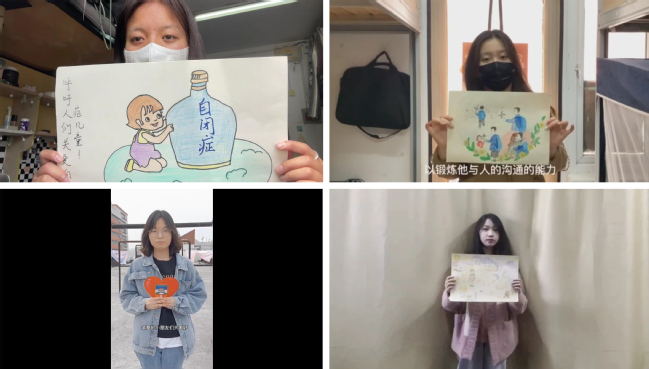同学们在此以绘画创作等形式通过视频向“来自星星的孩子”表达关爱,并希望以此呼吁更多人理解和接纳这群可爱的孩子,带给他们爱与温暖,让他们能够更好地成长。