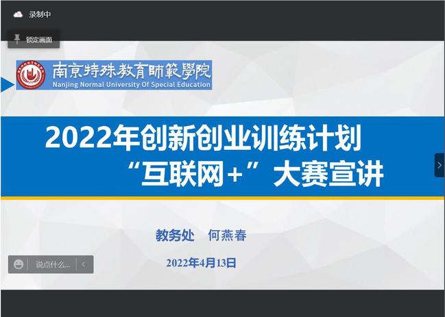 为帮助同学们了解老员工创新创业训练计划、“互联网+”大赛的相关内容,以及申报书、答辩ppt的准备要求等事宜,威廉体育于4月13日在线上举办创新创业系列讲座(三)即创新创业训练计划、“互联网+”大赛宣讲,本次讲座特邀公司教务处实验实训科科长何燕春老师为同学们带来精彩分享,公司20、21级同学积极参与。