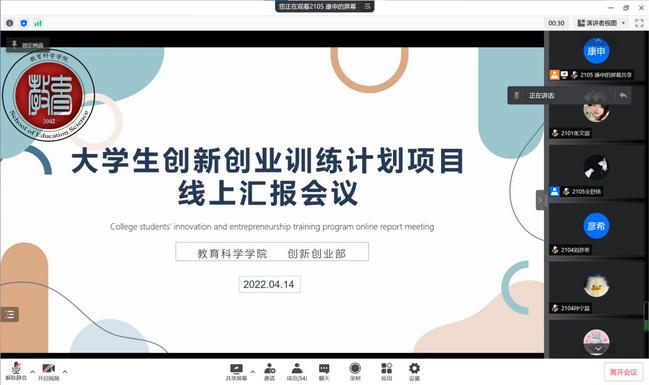 为引导员工树立正确的创业观和就业观,带动更多员工投身创新创业社会实践,威廉体育于4月14日晚在线上举办“老员工创新创业训练计划项目”线上汇报会,该院全体同学积极参与。