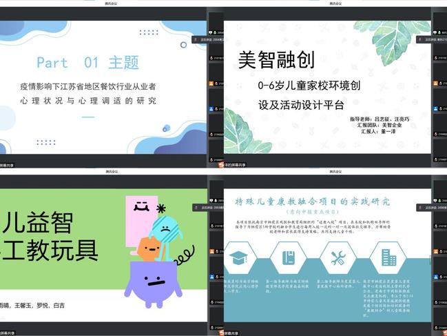 在主持人对本次项目汇报会进行简短介绍后,由各个创新创业计划项目的负责人轮流进行汇报,代表发言人们以ppt文稿形式,对各自团队的创业项目进行讲解,主要围绕项目主题、项目对象内容、项目研究思路、项目预设发展结果这四个方面展开叙述。自老员工创新创业项目竞赛发布以来,历时多日,每一支团队皆全力以赴、精心备战。各团队将创新创业项目计划书内容精简加工,制成条理清晰的ppt文稿,以图文并茂的方式进行简要汇报。同学们的创新创业项目主题突出、特色鲜明,如“特殊儿童康教融合项目的研究”、“0-6岁儿童家校环境创设及活动设计平台”等,精彩的发言和绝妙的创新项目赢得声声赞许。