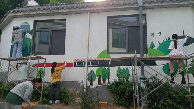 “绘美乡村”团队于7月9日在南京市溧水区山凹村开展暑期实践活动。在团队带队老师汪亮巧与山凹村俞悦经理了解完本村基本情况后,团队负责人范宇涵带领暑期实践团队12名成员结合山凹村整体规划风格,广泛征求当地村民的想法和建议,为山凹村进行墙体创意绘画设计,共绘制3面大型墙体彩绘、3处地面创意绘画,整体实践围绕“生态兴,文明兴”的理念,并充分考虑到当代审美及当地整体规划风格。绘美乡村团队成员齐心协力,用生动的色彩,为山凹村的环境建设增光添彩,同时向大众、向社会展现了南京特师学子的青春风采。