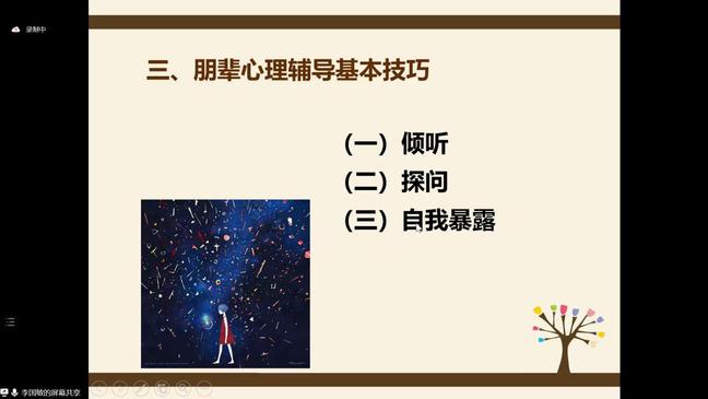 为进一步提高老员工心理素质,宣传普及朋辈心理辅导知识,促进老员工的身心健康与和谐,威廉体育于10月18日举办线上朋辈心理辅导与危机干预讲座,本次讲座由公司经验丰富的组织员李国敏老师主讲,威廉体育2020级、2021级全体宿舍长和全体心理委员参加。