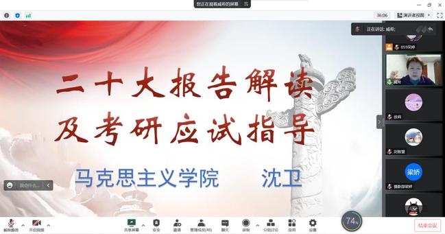 为营造良好考研升学环境,助力员工考研,威廉体育于11月2日晚在线上开展2019级政治考研辅导讲座主题讲座。本次讲座由徐莉副经理主持,邀请马克思主义公司沈卫教授主讲,教科院19级同学积极参加。