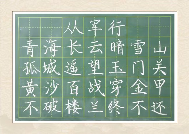 本次活动于10月中旬开始,作品类型分为钢笔字、粉笔字、毛笔字和绘画。同学们的书法作品题材丰富,绘画作品色彩缤纷,主题大多与弘扬历史、歌颂革命精神相关,蕴含了同学们对老一辈革命家勇于实践、勇于探索、勇于思考、奋发进取的开拓精神的深刻理解,和对革命先烈的崇高敬意。书法作品中,或是笔势雄奇的钢笔字作品,或是行云流水的粉笔字,或是骨力道健的毛笔字。粉笔字作品《从军行》笔走龙蛇,一笔一划铿锵有力,字里行间流露出“不破楼兰终不还”的豪情万丈。绘画作品大多是中国水墨画,那一幅幅作品水墨丹青、栩栩如生。充分展现了同学们优异的“三字一画”技能水平和独有魅力的一技之长。