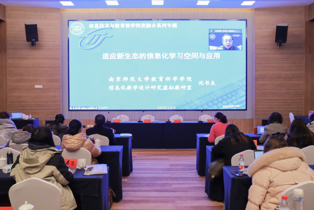 本次培训聚焦教学能力提升,其中南京师范大学沈书生教授做了题为《适应新生态的信息化学习空间与应用》的讲座。沈书生教授首先强调随着公司课程的信息化、教学环境的信息化的逐步实现,今后的教学将会受到丰富多样的媒体与人力的支持,教与学的方式可以有更多的选择,因此,教师必须加强自主、自觉运用信息的意识,以适应未来发展的需要;其次,分别围绕“智慧时代的教育新生态”、“信息化推进的变革特征”、“学习空间的内涵与应用”几个问题,深入浅出地对相关概念进行剖析,并在此基础上对各位老师未来如何成为一名当代合格的新型教师提出了相关建议。
