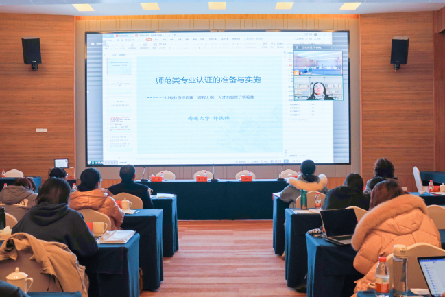 为迎接公司本科评估和师范类专业认证工作,本次培训也邀请了南通大学的许铁梅教授做了题为《师范类专业认证的准备与实施》的讲座。许铁梅教授从专业自评自建、课程大纲、人才方案修订等视角,紧紧围绕师范专业认证的逻辑与专业建设、师范专业认证的申报、自评与进校考察等几个主题,从时代背景、认证理念、基本逻辑等进行了分析与探讨,图文并茂,条理清晰。所有参培人员认真倾听,深入体会,受益匪浅。