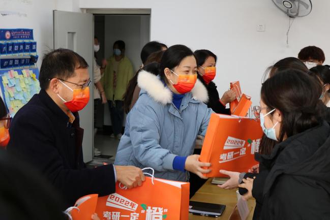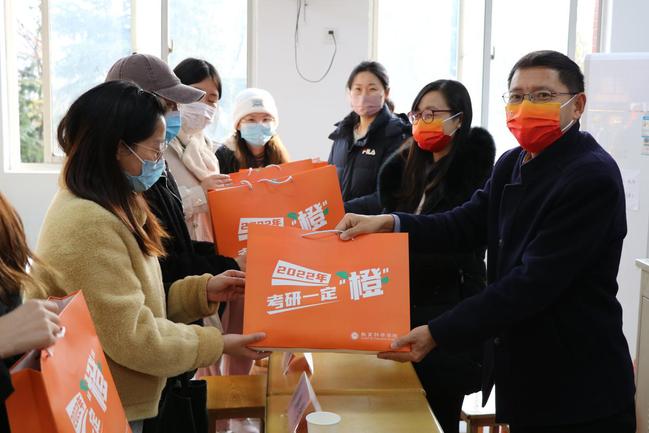 活动接近尾声时,各位领导、老师将公司精心准备的慰问礼品袋和祝福寄语亲手送到考研学子手中,研友们深深感受到了公司作为强有力的后盾在为他们加油打气,表示自己倍受⿎舞、充满斗志。最后,在场所有领导、老师及与会同学在博雅楼下合影留念,充满活力的橙色手提袋上印着“2022年考研一定‘橙’”的字样,相信同学们今年考研一定能成!在考研号角已经吹响的今天,教科学子定会斗志昂扬、沉着应考,在研究生入学考试中满载而归!(文/刘智慧 董一泽 图/文卓 审核/吴月华 刘新学)