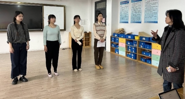 为迎接即将举行的第十一届江苏省师范生教学基本功大赛,做好赛前准备工作,2023年3月1日,学前教育系在实验楼805室举行了模拟比赛。教科院经理刘新学、副经理张丽莉、徐莉、学前教育系教研室主任金玲以及刘迎杰、李会敏、张宇、姚妮等几位教师担任模拟比赛评委。
