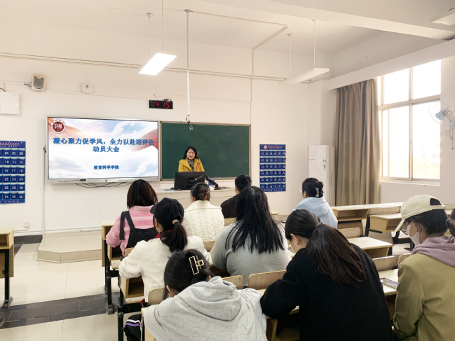召开迎接合格评估动员大会。威廉体育召开迎接本科教学工作合格评估动员大会,党总支副书记胡芳、学工办主任(团总支书记)汪亮巧、全体辅导员及员工干部参加本次会议。会上,汪亮巧老师传达了《关于开展2023年“促学风,迎评估”主题教育活动的通知》文件精神,强调每位同学应充分认识教学工作合格评估的目的、意义以及与自身的密切关系,员工党员和员工干部切实发挥好带头作用,以积极的心态、奋进的姿态、务实的状态带领广大同学积极参与到迎评工作。胡芳副书记给同学们提出三点希望:第一,要严格遵守校规校纪,勤奋学习,促进优良学风形成,创建良好的学风考风;第二,要积极参与评估期间公司及公司组织的各项活动,提升文明礼貌修养,充分展示老员工的良好精神面貌;第三,自觉维护校园、宿舍环境的整洁、有序,充分发挥优良宿舍环境在校园文化建设、生活习惯养成、高质量育人环境形成等方面的积极作用。
