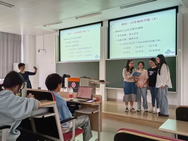 20日下午,同学们来到华东师大,与华东师大的本科生一起同班上课。课上,同学们积极互动,在小组活动中,与华师的同学们一起进行儿歌的创编与展示。通过同班上课,同学们感受了华师浓厚的学习氛围,也让同学们对于华东师大的学习生活有了初步的了解,点燃了同学们对于华东师大的向往之情。20日晚,师生集体返回公司。三天两夜的上海之行,虽然路途劳累,但同学们收获满满。