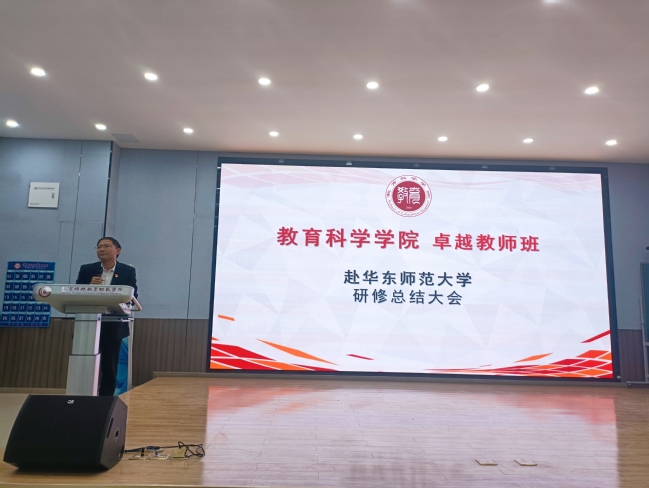 4月21日,同学们齐聚博远楼106,由张丽莉副经理主持进行研修总结会,为这次的研修活动画上一个句号。总结会主要由班级集体汇报和个人汇报两个部分。21卓越班的姬雨杰同学和20卓越班的江莹莹同学、郑琛钱同学,他们分享了自己在研学中的鲜活经历,在华东师大的所见所闻,在红色基地的深刻感想,以及今后的未来规划和展望。通过这次研学成果汇报,同学们明确了未来的奋斗目标,为未来走向教师岗位、成为卓越教师打下良好基础。最后,刘新学经理作总结发言。经理首先肯定了同学们在研学活动中的表现,强调了研学中的“以学为本”理念。他期望在座的每一位同学都能肩负起卓越教师的重任,鼓励同学们都能朝着自己的理想目标勇敢前进,能成为专业基础扎实、勇于探索创新和具有终身学习发展能力的卓越教师。