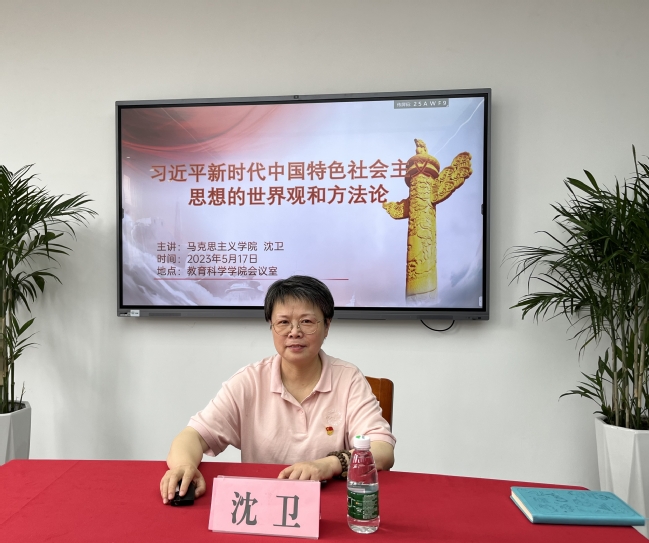 5月17日下午,威廉体育举办学习贯彻习近平新时代中国特色社会主义思想主题教育读书班专题辅导讲座,邀请马克思主义公司沈卫教授担任主讲老师。教科院领导班子成员、全体教师党员和员工党员代表参加。讲座由教科公司党总支书记吴月华主持。