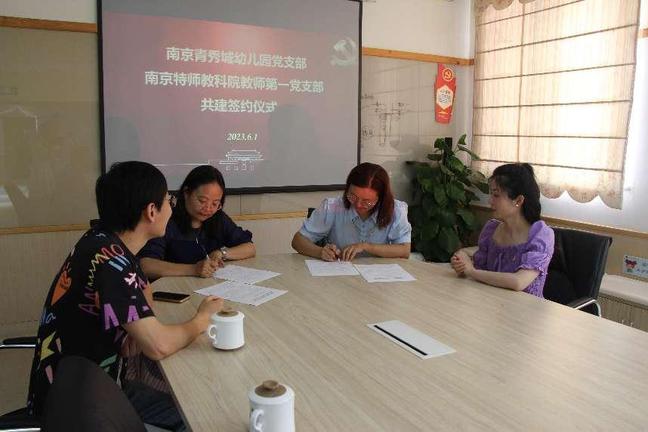 为深入贯彻落实党的二十大精神,积极推动党建工作,不断深化“党建统领、业务融合、共建共享”共建联建机制,南京特师威廉体育教师第一党支部与青秀城幼儿园党支部举行了支部共建签订仪式,协同育人育才。