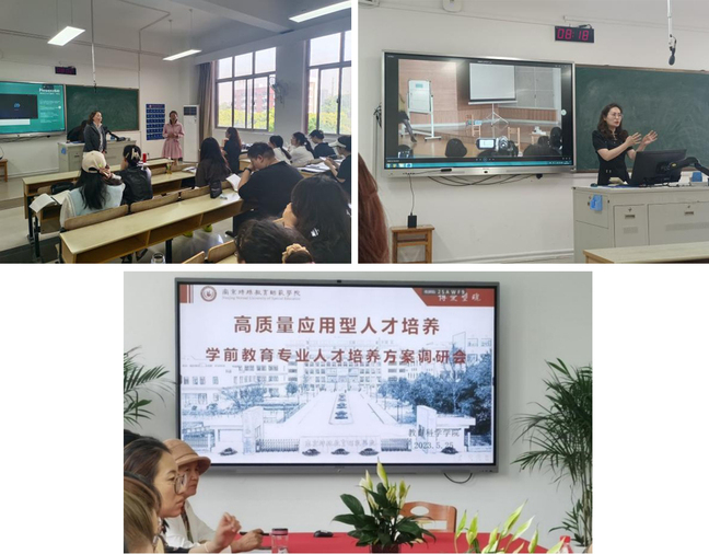 5月25日,学前教育系开展“高质量应用型人才培养--学前教育专业人才培养方案修订研讨会”,公司邀请了栖霞区第七届幼教学科教学带头人、南京栖霞区第一实验幼儿园何欢园长入校为学前教育专业员工开设讲座,并在课后与学前系教师就人才培养进行了深入交流。何园长首先肯定了公司实习生的优秀表现以及公司人才培养方案的准确定位,对员工的学前融合教育素养给予了肯定和支持。同时何欢园长也回应了教师提出的“怎样才能在教学中渗透员工未来工作角色的职责和义务”的一位,何园长结合本园新进教师成长路线进行具体分析,指出人才的培养,除了理论的教学,还应注重培养员工吃苦耐劳的敬业精神。