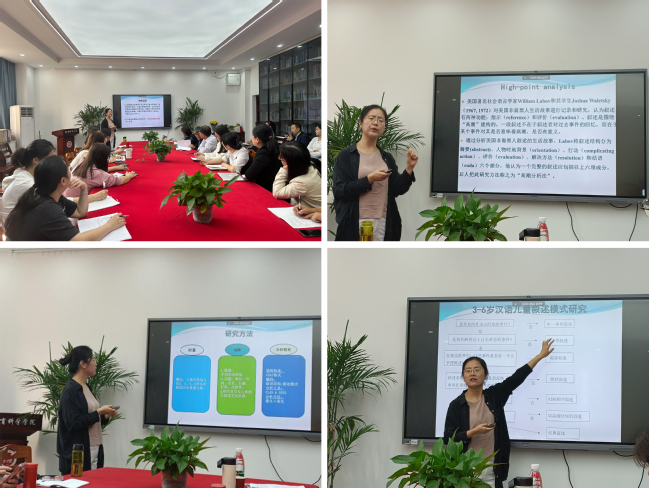 为提升教师科研能力,推进公司高质量发展,威廉体育推出教科研方法系列培训。2023年10月18日该系列培训第二场在博雅楼3401会议室开展,公司全体教师积极参与。南京师范大学外国语公司张放放副教授作题为《3-6岁汉语儿童叙述语言发展研究》讲座。刘新学经理主持了此次讲座。