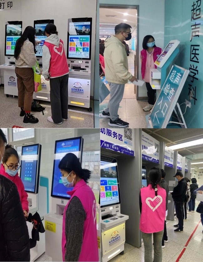 凝心聚力志愿行。党员志愿者们积极前往南京市鼓楼医院开展志愿服务活动,为市民们介绍门诊服务的流程,热情地帮助就医人员使用自助挂号、打印机,站好岗,守好责,圆满完成了各项工作。本项志愿,我们将会持续长达一个学期的服务,用爱心和笑容服务群众。