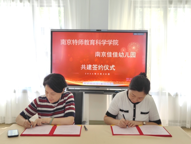 最后,吴月华书记和南京佳佳幼儿园陶敏园长共同签署学前融合教育共建合作协议。