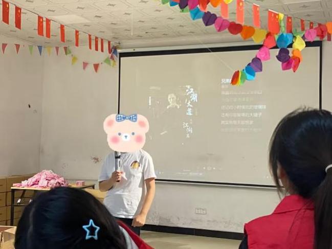 (在志愿者们的鼓励下,孩子们拿起了话筒,放声歌唱)