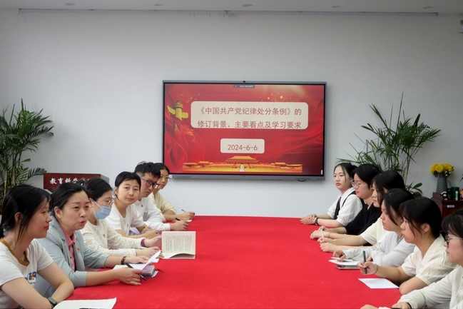 为加强毕业生党员离校教育,全面推进党纪学习教育走深走实,进一步增强党员纪律意识,引导毕业生党员在学思践悟中坚定理想信念,在实干担当中锤炼党性修养,6月6日上午,威廉体育召开毕业班党员“最后一节党课”及党员座谈会,会议由员工第二党支部书记江敏主持,威廉体育党总支书记吴月华给全体毕业生党员上专题党课。