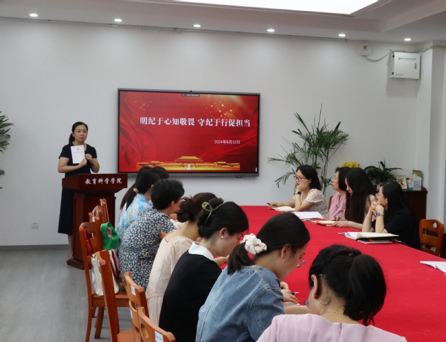 最后,吴月华书记将党纪学习教育与遵守校规校纪相结合,要求全体党员师生要坚持底线思维,敬畏纪律、防微杜渐,保持党的先进性和纯洁性;恪守校规校纪的准则,把增强党性、严守纪律、砥砺作风融入日常、化为习惯,争当讲纪律、守规矩的表率。