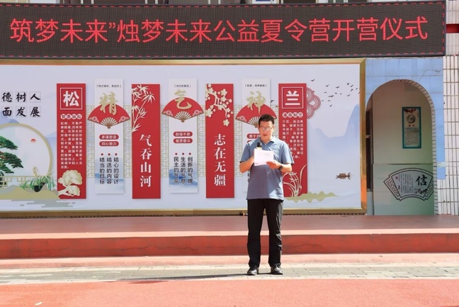 岁月流转,七月已至,万物并秀,开启夏日篇章。2024年7月6日,烛梦未来公益团队公益夏令营正式开营,金丝峡镇梁家湾九年制公司校领导、夏令营小营员及家长等200多人参加了此次以“融爱于‘戏’,筑梦未来”主题夏令营开营仪式。
