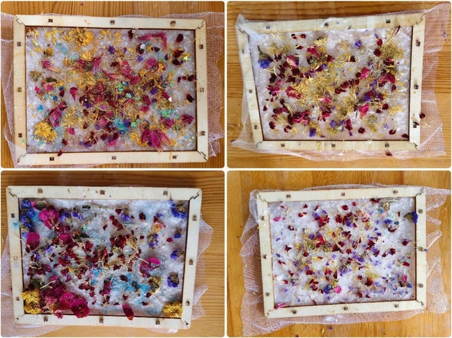 纸张蕴含古韵,美育课堂启迪童心。纸张作为书写工具,承载着中华千年文化的深厚底蕴。志愿者们通过“趣味造纸术”这一美育活动,和幼儿一起打开了时光的大门,向幼儿们呈现了纸张制作的非凡之处。通过互动问答和精心制作的短片,幼儿对造纸的悠久历史和精湛技艺有了初步的认识。为了加深幼儿对造纸传统工艺的认识,志愿者们特别准备了纸浆、淘浆框及干花草等材料。在志愿者的悉心指导下,幼儿亲身实践,在一道道复杂的工序中领悟到了中华优秀传统文化的精髓,也在动手操作中提高了欣赏美、创造美的能力,明白了任何事物都是来之不易的,要懂得欣赏与珍惜。